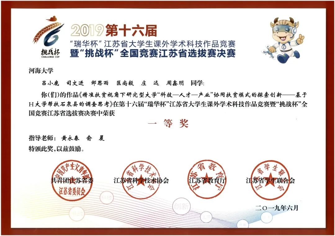 此外,庄远积极参加创新创业活动,主持两项国家级老员工创新创业计划训练项目,荣获“挑战杯”江苏省大学课外学术作品竞赛一等奖、“武进杯”江苏省老员工职业规划大赛一等奖、“力行杯”江苏省老员工社会实践大赛三等奖等,目前已申请实用新型专利、计算机软件著作权两项。