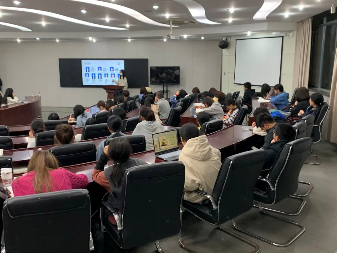 在刘远航同学介绍完比赛流程后,朱雨同学对比赛进行中的细节做了补充。朱雨同学建议道,技术新最能够支撑项目的认可度,市场上营销方式的创新在大赛中捉襟见肘,很难走到最后。而“公益项目要落实”是朱雨同学对此类参赛组的特别提醒。最后,朱雨同学详细阐述了申报书与ppt制作中的注意点,此类宝贵经验足以让同学们受益良多,反复思忖。