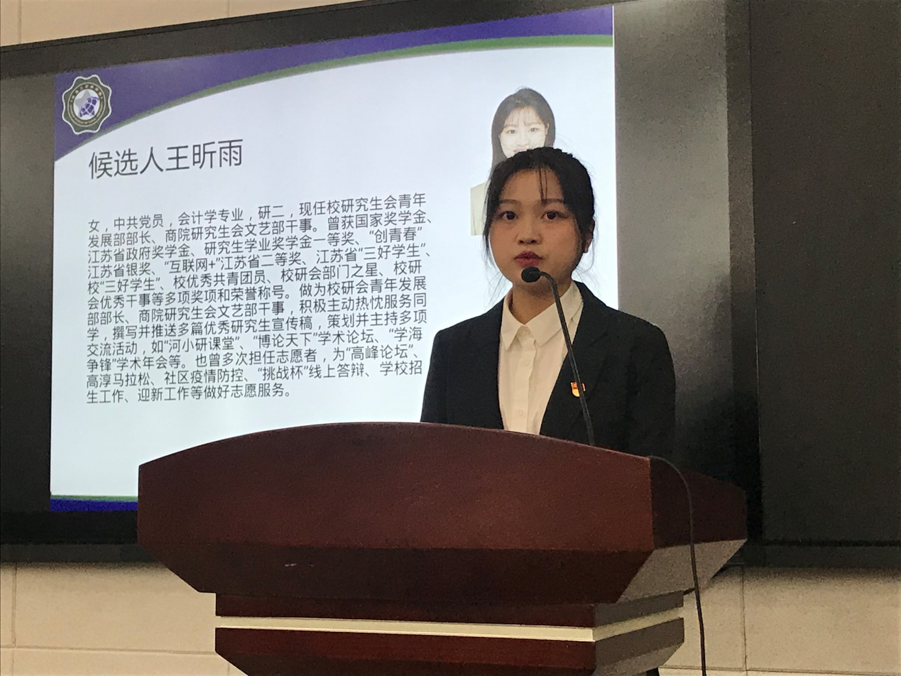 商学院团委书记陈璐老师代表公司领导对大会的召开表示热烈的祝贺,向公司广大研究生致以诚挚的问候。陈璐老师在讲话中充分肯定了公司研究生会过去一年做出的重要贡献和取得的显著成绩,并对公司研究生会的工作提出具体要求,寄予深切期望。她希望公司研究会继续以更高的标准严格要求自己,以服务广大研究生同学成长成才为主线,以锻炼自己为目标,勇于创新,积极地开展各项工作。