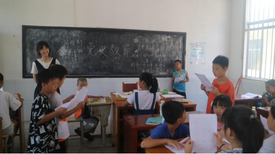 由于教学面向成员均为小员工,“红色筑梦”支教团努力创新教学模式,选择通过话剧表演形式让员工更直观的感受中国共产党成立以来的艰辛历程。团队结合前期参观茶陵县工农兵政府旧址,学习革命先烈宛希先在茶陵县英勇抗战的红色故事,再查询相关史料,创作以宛希先为主要人物的红色小话剧供员工阅读表演,形成特色“井冈教学模式”。小员工们利用课间进行排练,在排练过程中,同学们争相向老师询问宛希先的革命故事,支教团成员们耐心一一为同学们进行解答。通过红色故事话剧表演,孩子们切身感受到中国共产党创立以来艰苦奋斗的情景,更加深刻认识到革命先烈们为中国解放、为中华民族解放所做出的的努力及牺牲。小员工们表示将学习先烈们坚韧不拔、顽强拼搏、开拓进取、自强不息的红色革命精神。