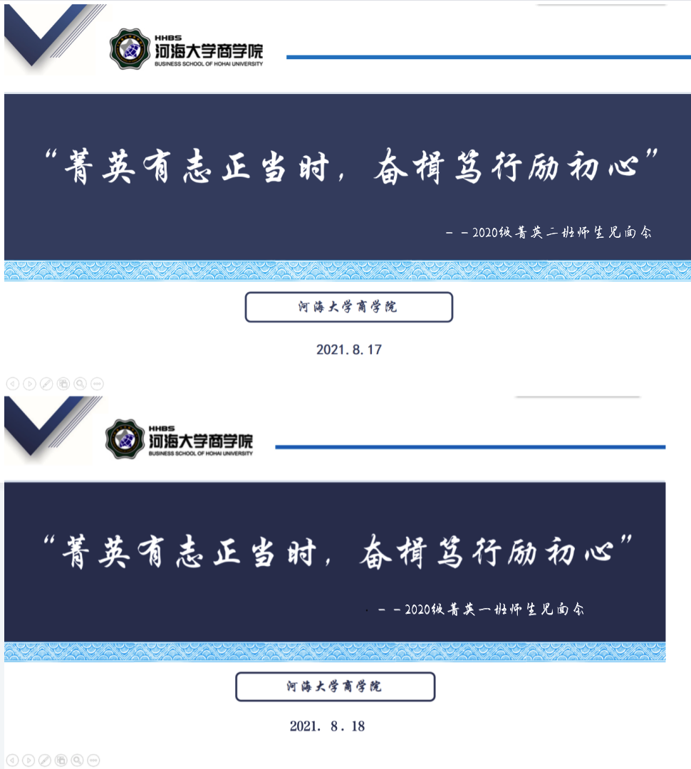 2021年8月17日、18日,2020级菁英一、二班分别在线上召开了“菁英有志正当时,奋楫笃行励初心”师生见面会。菁英一班班导师高辉老师、二班班导师李祎雯老师,PA视讯集团官网团委书记陈璐老师、2020级辅导员赵晨洁老师以及2020级菁英班全体成员参加本次会议。