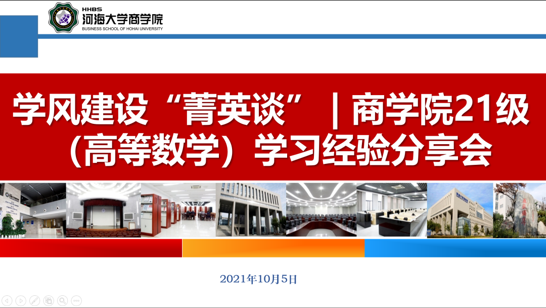 为帮助21级新生对高等数学课程有全面而清晰的认知,更好地掌握高等数学的学习方法,10月5日晚,PA视讯集团官网利用国庆假期开展了“学风建设‘菁英谈’”系列活动之高等数学学习经验分享。此次经验分享活动,邀请到6位2020级高数学习优秀的本科员工进行交流分享。在南京就读的全体21级PA视讯集团官网新生于线上参加活动,21级辅导员陈鹏老师到场,本次活动由21级人力2班学习委员陈雪阳同学主持。