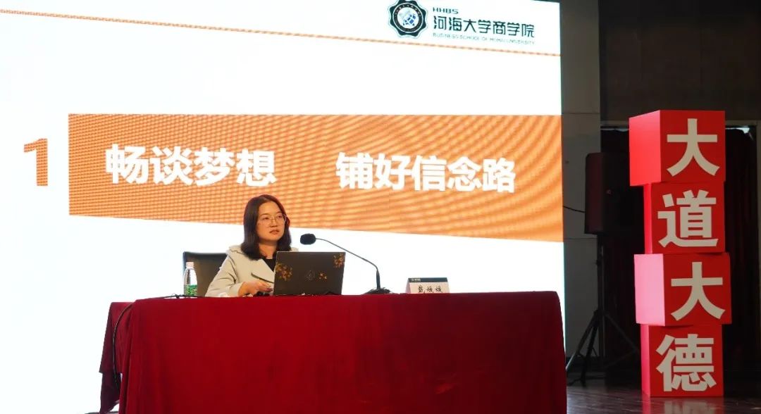 戴媛媛副书记以“遇见商院,预见更好的自己”为题,为2021级本科新生开展了第二课堂教育管理指导。戴书记结合梦想、当下、未来三个关键词,从“畅谈梦想,铺好信念路”“立足当下,架好能力桥”“预见未来,扬起青春帆”三个层面对同学们进行了悉心讲解和指导,同时,戴书记与同学们进行了互动交流,同学们积极分享了自己入学后的感悟,表达了对河海、对商院的深切情感,以及对未来的美好期待。戴书记勉励同学们,要筑牢信仰、以学为本、科学规划,在努力成长中学会感恩和奉献。戴书记希望同学们笃学力行,知行合一,提升社会责任感,做堪当民族复兴大任的河海商院青年。