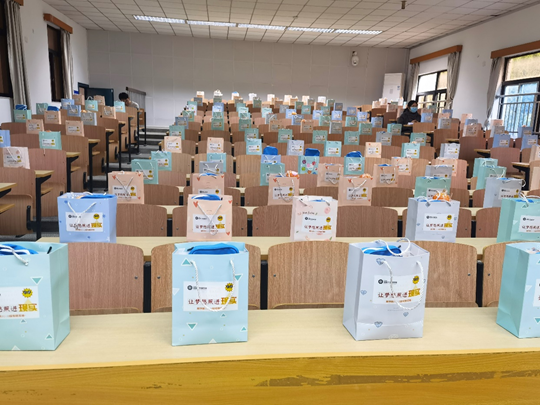 孙菁老师还为同学们介绍了公司和自己精心准备的考研加油包。加油包中共有7样物品:一包安全防疫用品,为同学们的安全保驾护航;一包文具用品,希望同学们在考场上下笔如有神;一袋坚果,希望大家带着信仰坚持到底;一个惊喜盲盒,希望大家好运连连;一颗橙子,希望大家心想事成;几片暖宝宝贴,希望大家感受到温暖备至;一封孙老师的手写信,希望大家带着祝福信心倍增。