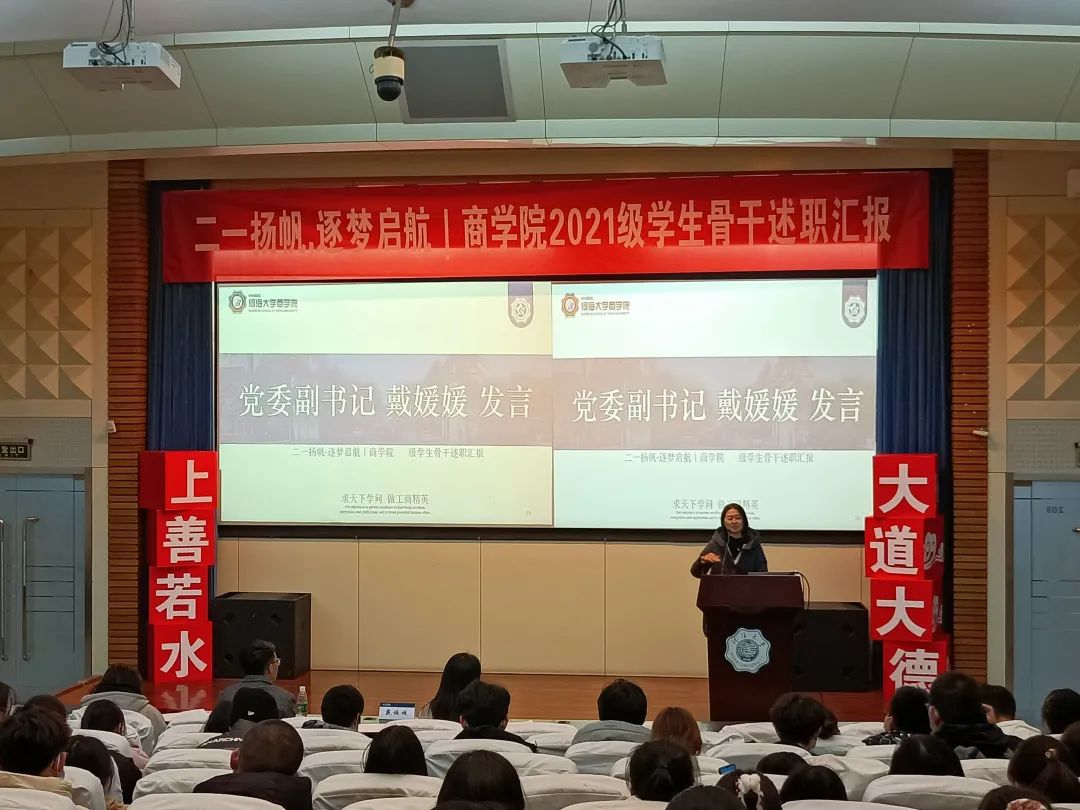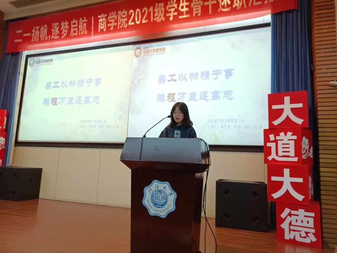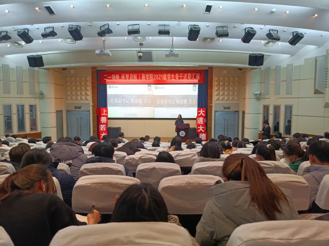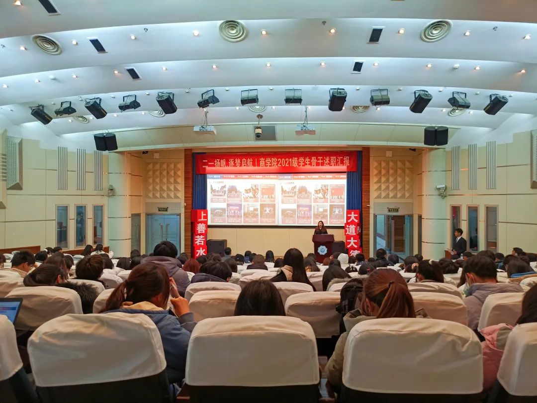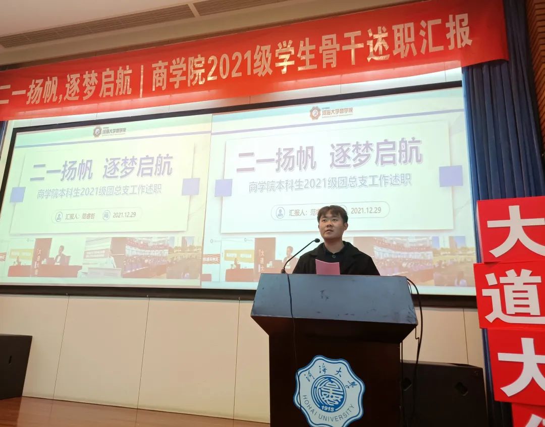 为助力2021级新生员工骨干综合素质涵育、强化员工骨干队伍建设,增强员工骨干自我教育、自我管理、自我服务、自我监督的意识,搭建员工骨干交流学习平台,12月29日晚,2021级团总支于江宁会议中心组织开展员工骨干述职汇报大会。