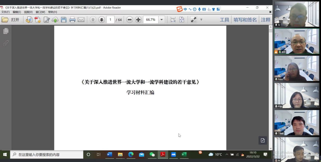 近日,按照公司工作部署,PA视讯集团官网组织各学科开展了《关于深入推进世界一流大学和一流团队建设的若干意见》(以下简称《若干意见》)学习研讨活动。各学科结合当前形势和自身建设情况,分别采用线上、线下相结合的方式畅谈了学习体会。