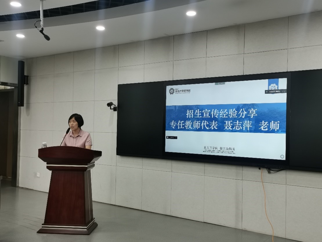 教师代表聂志萍老师多次参与公司、公司本科招生宣传工作,聂老师结合自己的招生宣传经历,向与会老师分享了“如何与家长、员工沟通”、“如何锁定目标生源”等方面的经验。