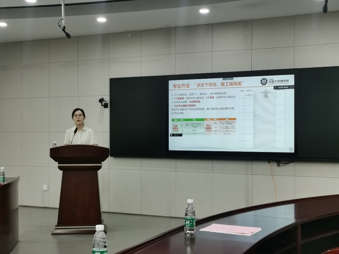 蓝崑副处长从2022年面临的情况和2022年工作的开展两个方面展开分享交流,向与会的师生详细介绍了公司今年的具体招生政策,包括各专业包的划分、考生选科的情况以及志愿填报模式等,并着重分析了2021年的招生数据情况,从而帮助公司师生更加深入了解招生宣传政策。此外,蓝崑副处长为与会师生分享了招生宣传的具体策略,从而提高招生宣传目标完成的针对性和实效性。