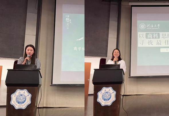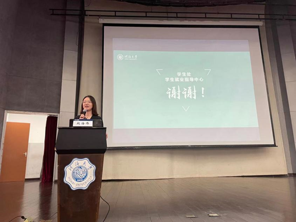 其次,2019级本科生辅导员潘佳莹老师和史玉莹老师从年级基本情况、第一课堂、第二课堂、就业必知四个方面向同学们展开介绍。结合毕业要求告诫同学们立足目标、严守底线。此外基于调查数据,与同学们交流了年级的生涯规划意向情况,并介绍年级考研帮扶举措。史玉莹老师针对应届生就业问题进行了详细说明,包括就业事项须知、秋招宣讲招聘等。更借鉴往年员工求职、考研、考公经验,期望同学们做好求职规划的时间管理。
