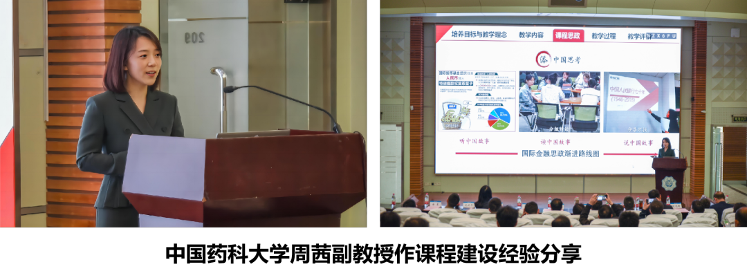 优秀课程建设案例分享环节,第二届全国高校教师教学创新大赛二等奖、江苏省高校教师教学创新大赛特等奖获得者中国药科大学周茜副教授作《行业特色高校经管类课程建设实践与探索》经验分享。她从培养目标与教学理念、教学内容、课程思政、教学过程和教学评价五个方面出发,以《国际金融》课程建设为例,介绍如何以“四新”建设为引领、以课程思政为依托,在结合公司特色、体现课程特点的基础上服务中国式现代化。周茜副教授还以生动的教学案例展示如何在教学过程中利用先进的信息技术创设教学环境、设计多样化的教学形式来启发员工主动深入思考,提升课程在知识传授、价值塑造、能力培养等方面的质量和学习效果。