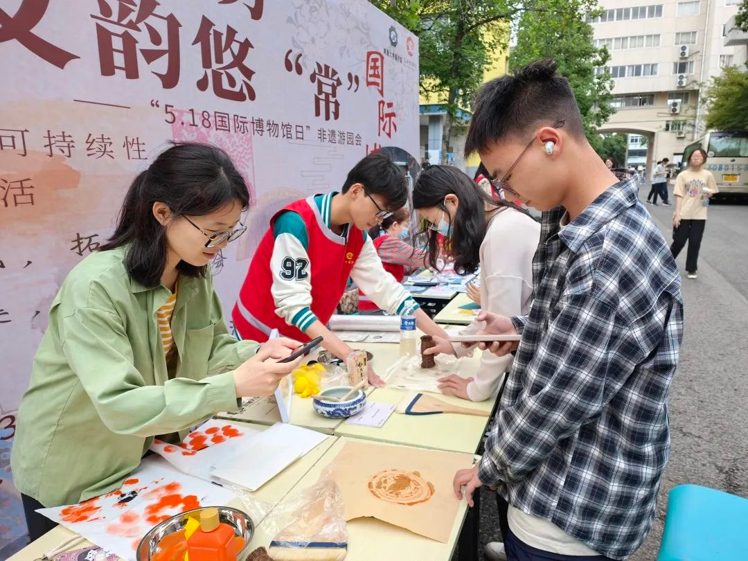 5月18日为国际博物馆日,由国际博物馆协会(ICOM)于1977年发起并创立。这一天世界各地博物馆都将举办各种宣传、纪念活动,庆祝自己的节日,让更多的人了解博物馆,更好地发挥博物馆的社会功能。5月18日中午,PA视讯集团官网团委、常州博物馆在PA视讯常州校区联合举办了“博物搴芳 文韵悠‘常’”5·18国际博物馆日——非遗体验游园会,以非遗游园会的形式让同学们更加深入地了解常州的历史和文化,感受非遗之美。