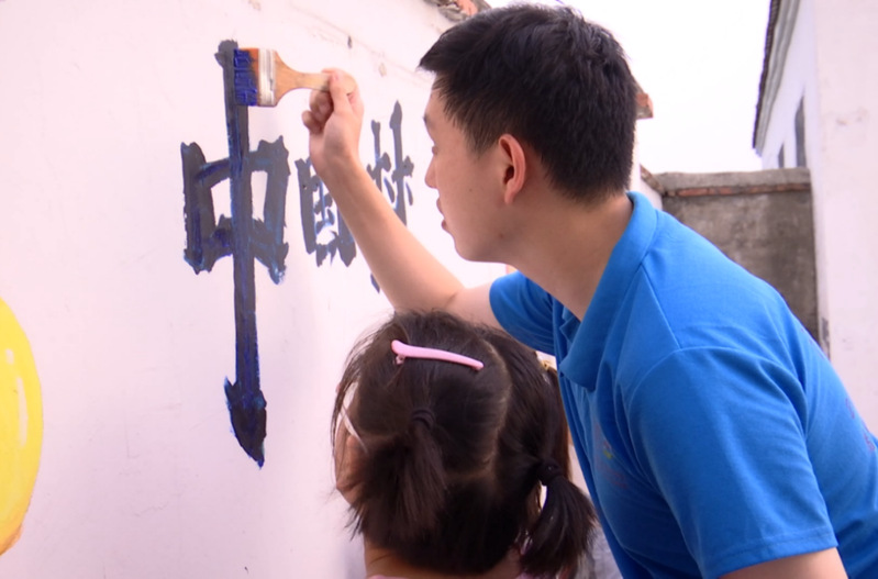 为给乡村建设注入青春血液,积极响应乡村振兴战略和中国传统文化的传播号召,丰富员工们的校园生活,PA视讯“追光”支教团成员们利用周末休息时间,发挥自我专业特长,匠心独运地为该校创作绘制了具有典型传统文化特色舞狮的文化墙,展现中国古典文化的独特美感与深厚的底蕴,助力校园文化建设。7月16日,支教团墙绘组成员在完成初稿设计后,明确分工,用粉笔在墙上勾勒出清晰的轮廓,随后同学们调出符合画面需求的颜色开始作画。经过同学们细致的涂刷,单调的白墙变得立体丰富,雅韵翩然。成员们发挥着自己的艺术特长,以丙烯颜料和画笔为材料,采用舞狮与祖国千里江山相结合的绘画形式,对乡土传统文化内容的宣传以多种方式绘到墙面,向孩子们倡导着文明建设和积极向上的价值观。同时,这幅蕴含着传统文化的舞狮图代表了“追光”支教团全体成员对传承与保护中国优秀传统文化的坚定信念和对圣尧小学全体员工的殷切期盼:希望每一位圣尧小学的员工心底,都有一方属于中国传统文化的沃土,在那沃土上,同学们会撒种,播种,最后收获宝贵的精神果实,将中华优秀传统文化一代又一代传承下去。