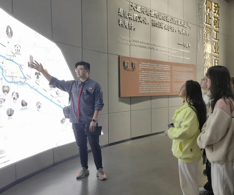在企业参观环节,跟随着工作人员的引导,同学们参观了位处中车戚墅堰机车有限公司原动力车间的常州大运河工业遗产展览馆,“致敬工业百年,仰止智造龙城”,在场同学深刻感受到我国铁路客货运内燃机车行业的时代变化和中车戚墅堰机车有限公司的发展历程,进一步体悟消化了仲怀清先生的经验分享。