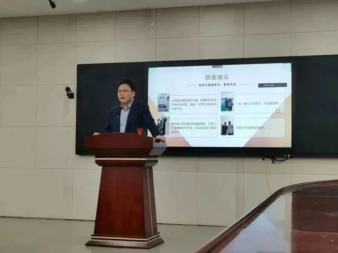 讲座开始,郭登岳老师幽默风趣地进行了自我介绍,从他的读书时的经历和机缘巧合下的创业机遇展开,深入浅出地告诉我们学习的重要性。同时,他讲述了他员工时代的经历,鼓励当代老员工要拥有自驱力:坚持学习、认知清晰和脚踏实地。