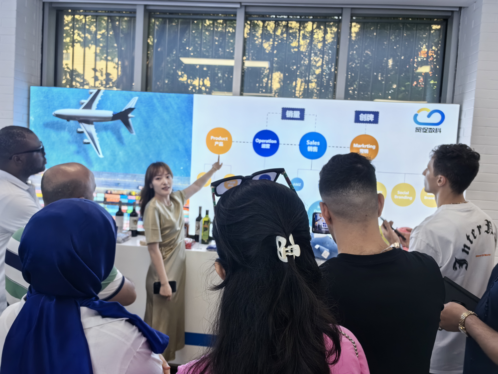 活动伊始,长三角跨境电商创新发展中心的工作人员带领同学们参观发展中心,介绍了中心的发展历程和创新服务等内容。参观过程中,发展中心的工作人员重点向同学们展示了中心先进的服务理念和成熟的运营模式,并且详细讲解了跨境电商B2B2C业务模式流程以及发展中心“运营载体+,产业孵化+,人才支撑+,资源服务+”的服务体系。通过参观介绍,同学们不仅深入了解了跨境电商的发展现状和未来趋势,更感受到了跨境电商的魅力和挑战。