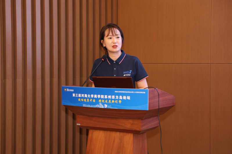 主题发言阶段由MEM教育中心学术主任薛松主持。苏州中卫宝佳净化科技有限公司总经理张华、南京威尔药业集团研究院副经理王娅、公司副经理张可分别就中卫宝佳净化系统对健康中国的贡献、威尔药业的绿色材料研发进展及公司在人才培养上的创新进行了介绍与分享。
