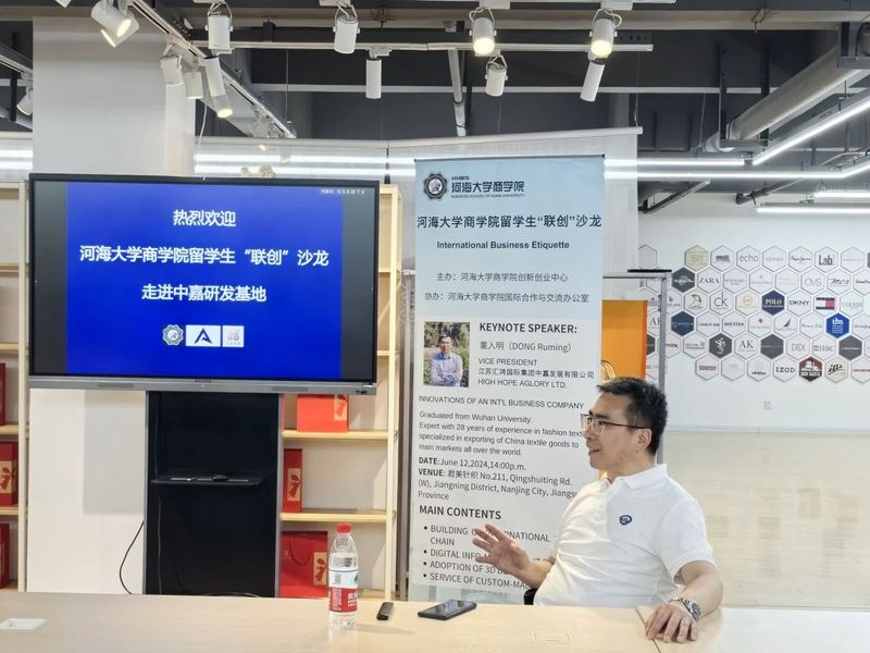 参观结束后,董入明先生为同学们详细介绍了中嘉公司的发展情况。他强调中嘉公司是有着50年历史的专业国际贸易公司,公司多年来坚持专业化、特色化的理念以及不断转型升级的决心。董入明先生还特别提到了中嘉公司的业务模式转变,从最初的OEM(代工生产)逐渐升级到ODM(原始设计制造),并开始尝试在国内的高校文创市场开展OBM(自有品牌制造)业务。董先生细致的介绍不仅加深了同学们对公司运作的理解,也激发了他们对创新创业的热忱和憧憬。