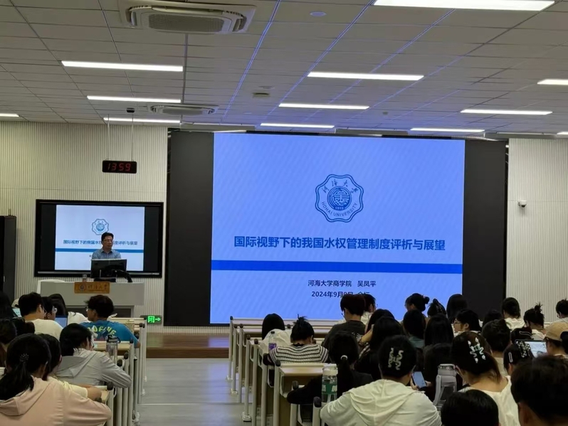 2024年9月9日下午,吴凤平教授为公司2024级研究生新生开展题为“国际视野下的我国水权管理制度评析与展望”的学术讲座。PA视讯是一所以水利为特色的高等院校,吴教授以“水”为始,结合PA视讯集团官网涉水管理特色,为新同学们讲授了开学第一课。