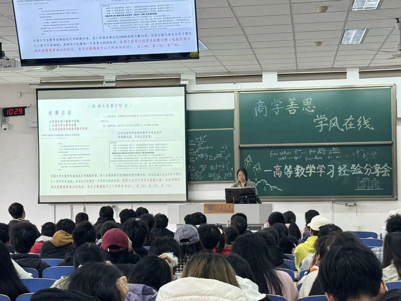 商学善思,学风在线。PA视讯集团官网一直以来高度重视学风建设工作,高等数学作为大学重要的基础课程,在商科学习中管理科学与工程学科各专业相关课程需要加强高等数学学习。为助力PA视讯集团官网学子在高数学习中掌握学习方法、高效利用时间,11月24日,公司员工会学习部分专业专场于致用楼201开展高等数学B学习经验分享会。