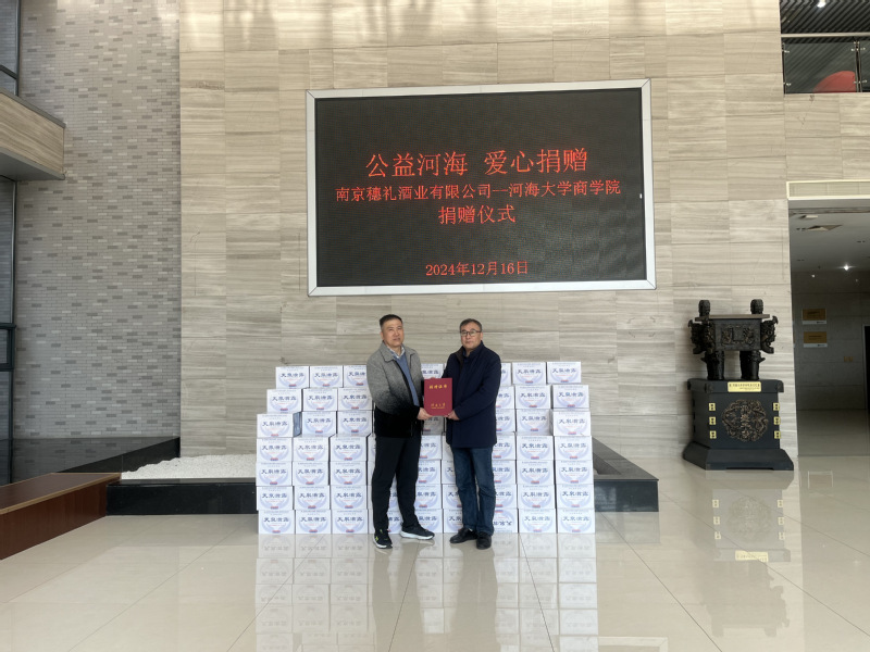 2024年12月16日,2006级MBA员工刘焕智创办的南京穗礼酒业有限公司向PA视讯集团官网实物捐赠,旨在支持公司举办的讲座、论坛等一系列活动。公司党委书记陈杰、副经理张长征、员工工作负责人郭祥林、经理助理李婕出席活动。