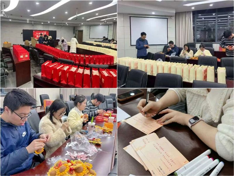 老师和2021级员工代表一起分装礼物