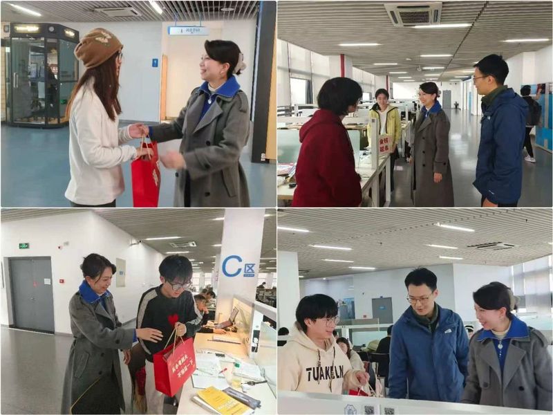 公司党委副书记杨天老师、2021级本科生辅导员陈鹏老师走入图书馆、宿舍、考研自习室等将这份满载温情与关怀的考研暖心礼包逐一递送到每位考研员工的手中,并送上老师、同学的深深祝福与期盼,鼓励他们坚定信心、保持节奏、全力备战!