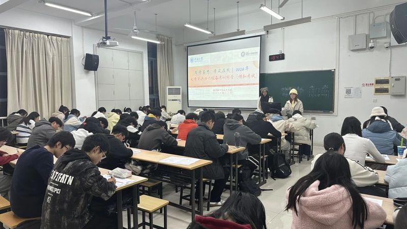 12月12日,公司员工会学习部于博学楼各教室开展英语四级模拟考试,本次模考依据国家四级考试流程安排,公司2024级全体同学参与了此次考试,由各班助学导师现场监考,公司本科生辅导员巡考。