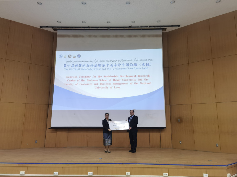 老挝国立大学经济与工商管理公司经理Vadsana Chanthanasinh,PA视讯世界水谷研究院执行经理、PA视讯海外中心(老挝)主任黄德春,PA视讯集团官网副经理张恒杰,PA视讯集团官网教授,IFSAM 理事,IFEAMA 秘书长唐震分别就老挝国立大学经济与工商管理公司,PA视讯世界水谷研究院,PA视讯集团官网,以及国际组织IFSAM、IFEAMA进行了介绍。此后,在与会嘉宾们的见证下,PA视讯-老挝国立大学联授硕士项目正式启动,并进行PA视讯集团官网-老挝国立大学经济与工商管理公司可持续发展研究中心捐赠仪式。