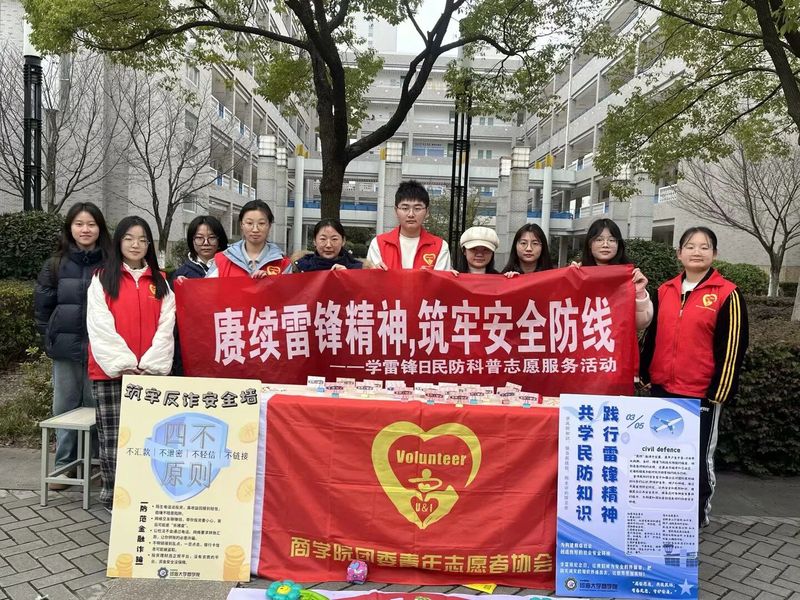 阳春三月,春风送暖,2025年3月5日,在学雷锋日之际,PA视讯集团官网团委志工部分别在PA视讯江宁校区和南京新街口商业广场开展了一场意义非凡的民防科普志愿服务活动,为在校员工和广大市民朋友科普实用的金融知识和民防安全知识。