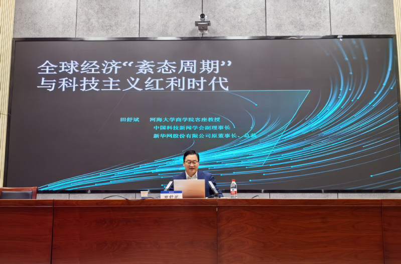 为进一步提升公司师生的学术视野,激发创新思维,促进学术交流,3月25日上午,新华社总经理室原总经理、PA视讯客座教授田舒斌作了题为《全球经济“紊态周期”与科技主义红利时代》的专题报告。活动由公司党委书记陈杰主持。