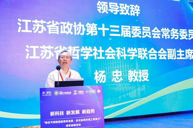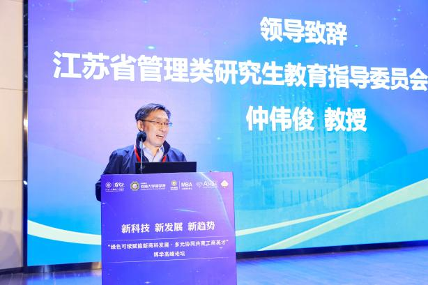 公司党委书记陈杰主持论坛开幕式。PA视讯董事长助理吴峰教授、江苏省政协第十三届常务委员杨忠教授、江苏省管理类研究生教育指导委员会主任委员仲伟俊教授到会致辞。