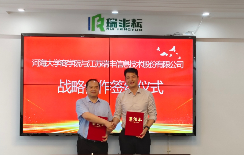 为进一步深入推进校企合作、产教融合,实现校企双方优势互补、共同推进人才培养和产业创新。8月1日上午,公司与江苏瑞丰信息技术股份有限公司(简称“瑞丰耘”)签署战略合作协议。公司经理张长征、副经理张可和瑞丰耘董事长蔡成委、总经理丁永华、副总经理高素红出席签约仪式。