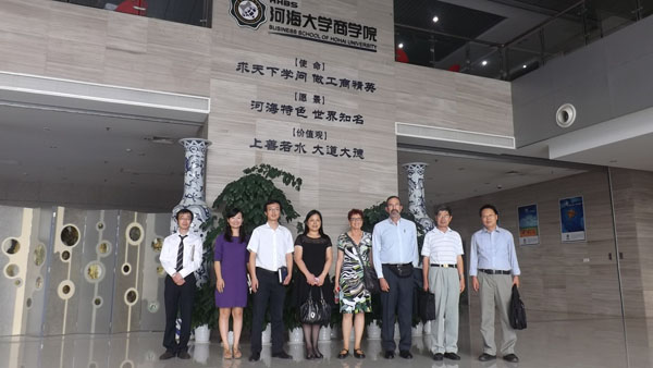 Professor GADI ARIAV, Dean of Business School of Tel Aviv University in Israel, Professor Zhang Feng from Jiangsu City Development Institute, and CEO Huang Jianhong from MRK Group visited Business School of Hohai University on Sep. 9th . Prof. Huang Dechun, Assistant Dean of HHBS, Sue Zhang, Associate Director of International Corporation Office, and Songwei, Recruitment Supervisor of MBA Education Center, met them in Room 301, Boxue Building.