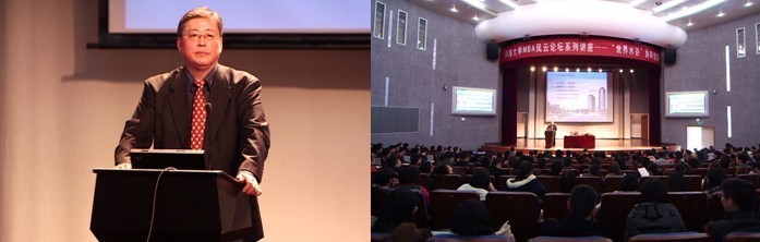 | MBA Lecture Series was held as scheduled in lecture hall for Business School of Hohai University at 9 am on Nov 17, 2012. Professor Zhang Yang, as the dean in Business School, made a lecture titled “ Water Valley – a coordinative and innovative system” Professor Zhang Yang, as a main proponent, indicated that we are undertaking to build Water Valley - a coordinative and innovative global system integrating water conservancy education, science and technology, talents,capital, industry, culture, etc, which is based in Nanjing, covers all the country and faces the whole world. Water Valley will become an international famous water town for it takes water as core, relies on advantages from Hohai University with the characteristics of world-class water conservancy and forms regional complex by interaction of global famous water conservancy education units, water conservancy r & d institutes, international high-end water conservancy talents, water industry agglomeration, water financial capital and social service system. Professor Zhang Yang explained global headquarters’ characteristics of Water Valley in detail which will be built into a demonstrative, modern, characteristic and ecological new innovative water conservancy park by highlighting Chinese development patterns and characteristics of Hohai University, referring to American Silicon Valley and Stanford University, etc and coordinating domestic and international industry, education, research and finance. Professor Zhang Yang interacted with all present students on suggested questions and by micro-blog from the beginning to the end warmly and fruitfully under friendly and open atmosphere which is thought highly of by all the participants. ![]() |