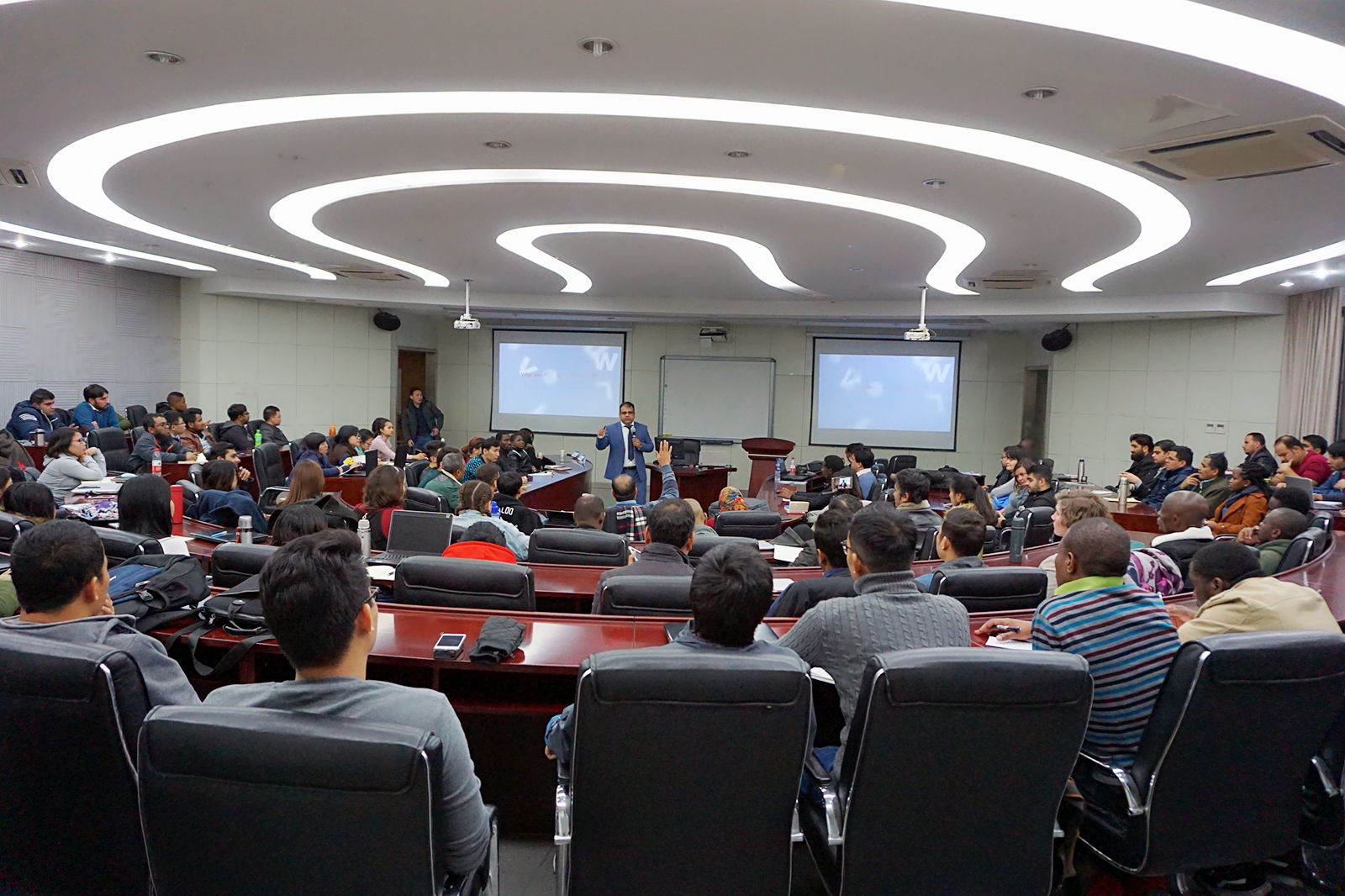 The Annual Research Seminar Series 2017-2018 of Hohai Research Forum was successfully held on 29th, November 2017 with the motto of 'Enrich Your Skills for High-Quality Research' at the Business School of Hohai University. More than 135international and local students from 5 universities from multidisciplinary areas attended the Seminar. The Assistant Dean of Business School Professor Huang Dechun and Associate Professor Hua Jian from the International Cooperation Office of the Business School inaugurated the seminar with their valuable opening remarks.